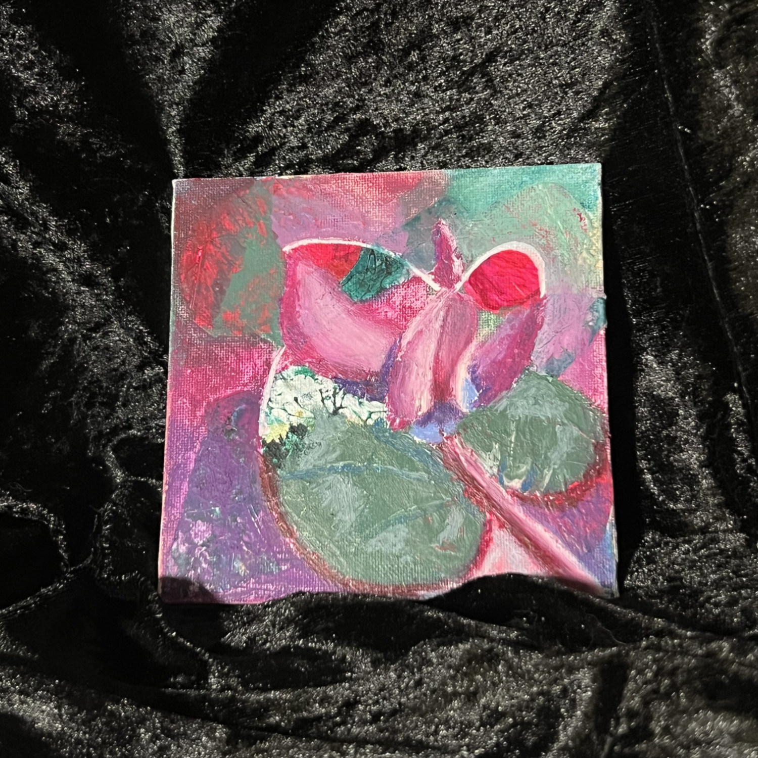 This Winter Cyclamen artwork is small cyclamen art that works to brighten up small areas, just like the flower itself does.
